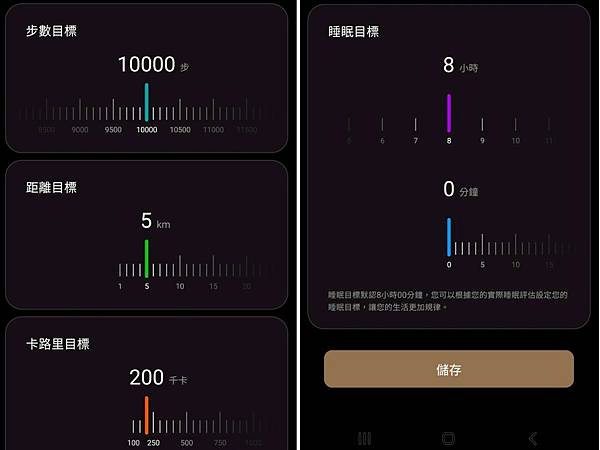 每天活動量步數 🦶、活動量(卡路里)、睡眠目標也都可以自由設置⚙️