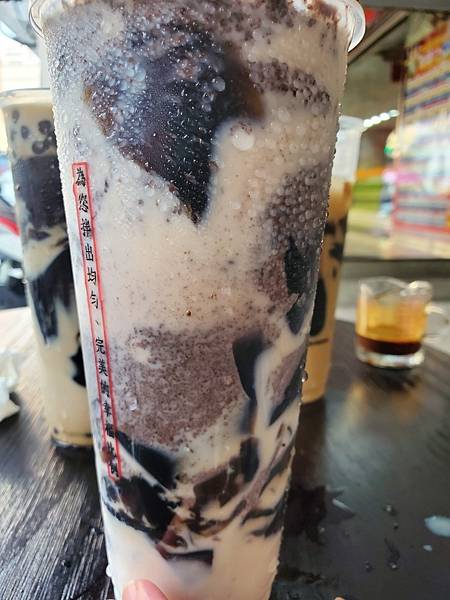 上次介紹的飲料店因為裝杯封口了,只能從側面拍,難以拍清楚料的樣子,