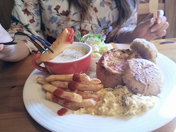 我點的是焗烤洋芋胖胖球~所以裡面滿滿的馬鈴薯泥跟厚厚的起司~