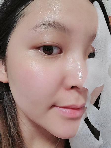 敷完臉上會呈現透亮的水潤感,殘留的精華液按摩幾下就完全吸收囉,不會有黏膩感!