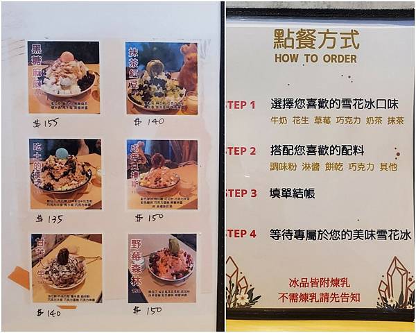 主打的雪花冰🍨有搭配好的人氣款、選底再逐步選配料兩種選擇!