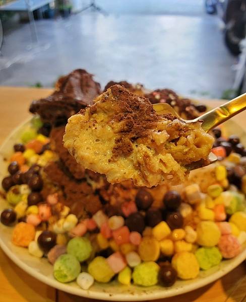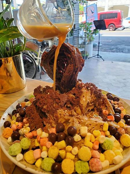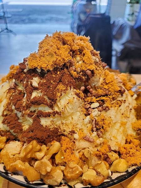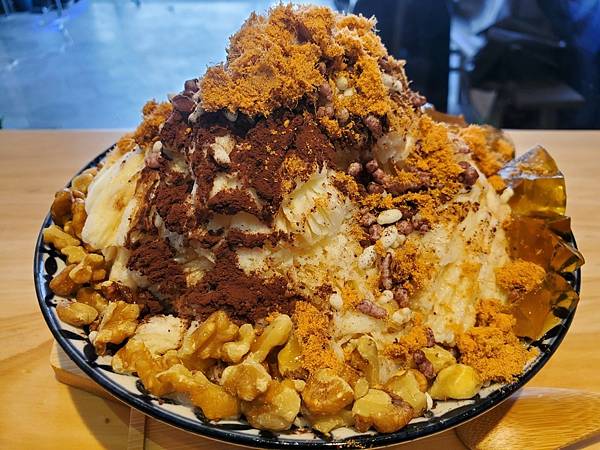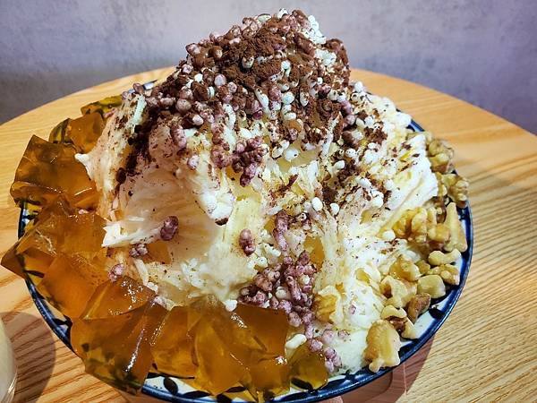 牛奶雪花冰+可可粉+肉鬆+綜合堅果+茶凍