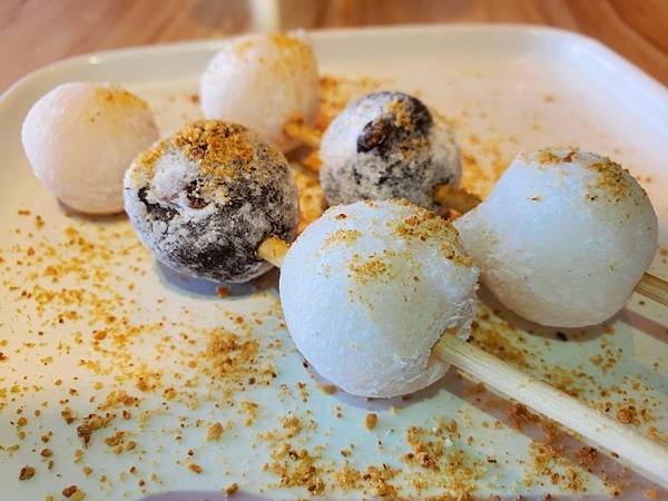 很日式風格的麻糬團子!冰的麻糬團子不會太過冰,上面還撒有花生粉增加香氣~