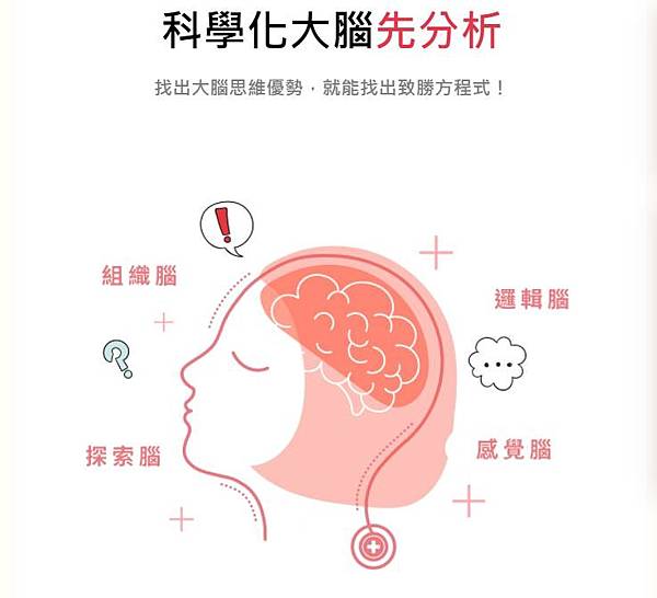 這些區塊各自掌管不同的能力,分別是分析解決問題、組織執行計劃、和諧人際關係、自由創新整合四類。