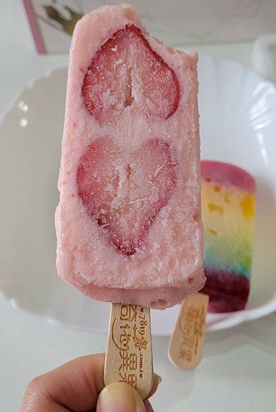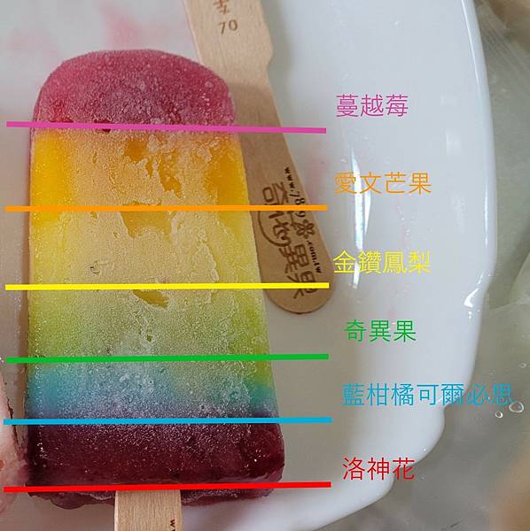 加上奇花異果的冰棒冰晶體很細膩!夢幻彩虹吃起來有一點雪酪的感覺