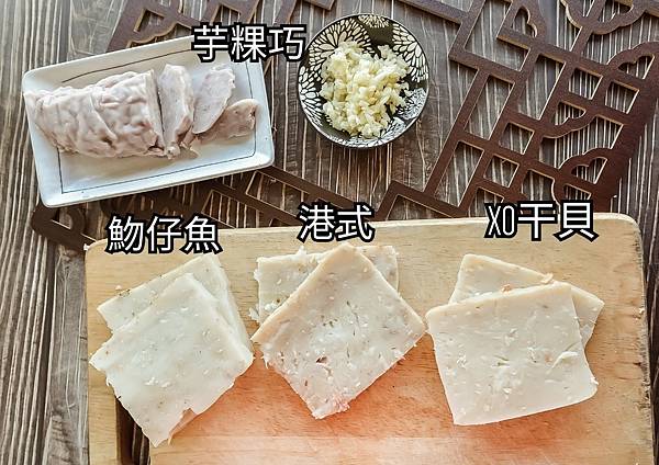 這次買了三種不同口味的蘿蔔糕( 魩仔魚 🐟 、港式、XO干貝 )、芋粿巧來跟大家分享!