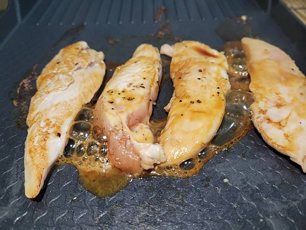 雞菲力下鍋煎時雞肉的香氣濃郁~聽著滋滋的燒烤聲口水都要滴下來拉!