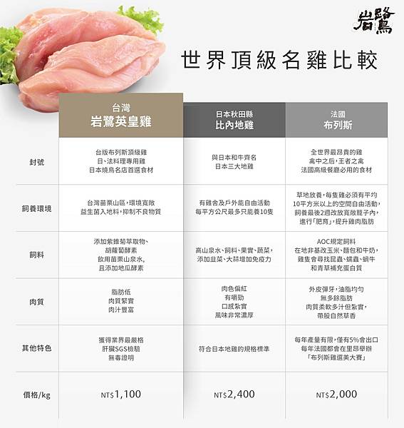 岩鷺英皇雞與頂級世界名雞比較: