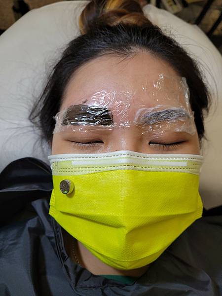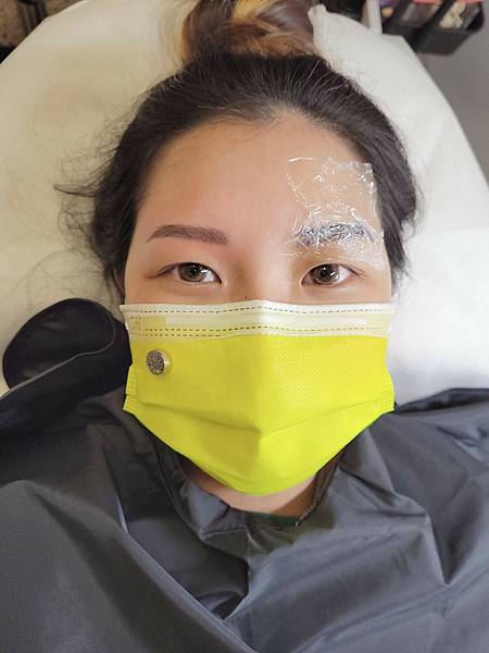 中途老師還會厚敷一層色乳,讓眉毛吃色,