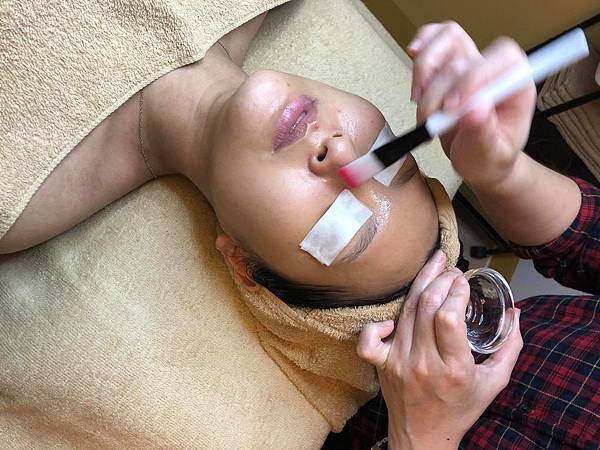 美容師會貼心地在一旁仔細注意皮膚變化,逐步進行中和以免酸類對皮膚造成太大刺激,