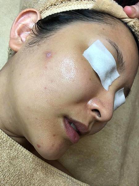 有些有痘痘的地方呈現白化的角質代謝反應~這代表女神酸在促進皮膚代謝囉!!