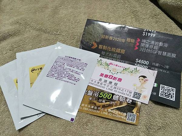 保養後會貼心地給一張皮膚照護注意事項+連續三天的EGF智慧修復護膚面膜,