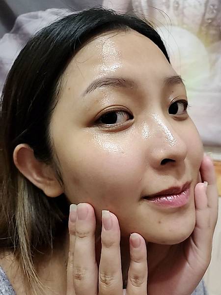 敷完面膜皮膚呈現一個水嫩透亮的光澤感;