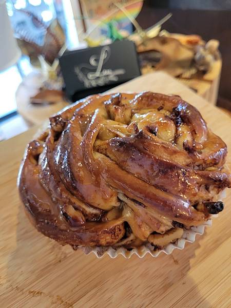 手卷的肉桂捲花紋特殊,每一層裡都含有肉桂醬,加上焦糖醬微鹹濃香!