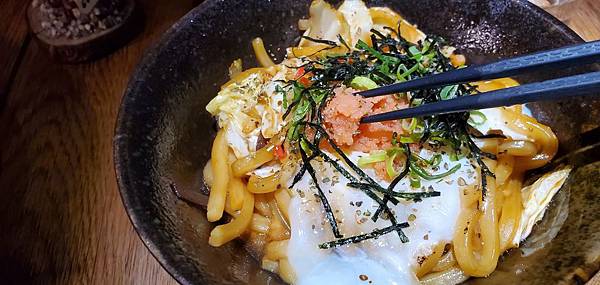 醬汁是鹹甜參半的濃郁日式醬汁,半熟的蛋黃戳開後與麵拌勻,讓整體更加香濃,