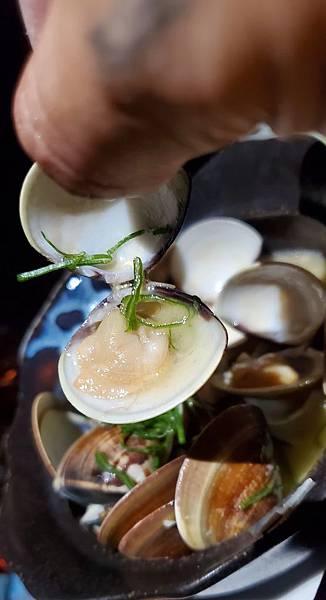深深的鐵鍋內滿滿的全是蛤蜊,聽調酒師說他們的蛤蜊都放半斤,