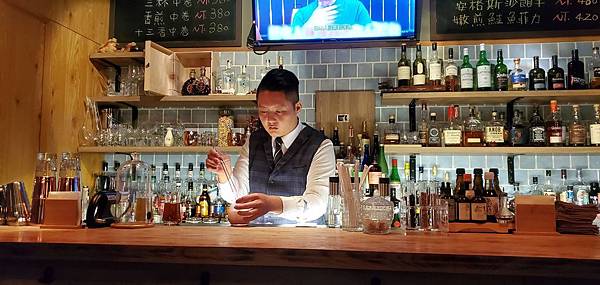 吧台區酒品很多,調酒師對每一款酒的特色與資料瞭若指掌,