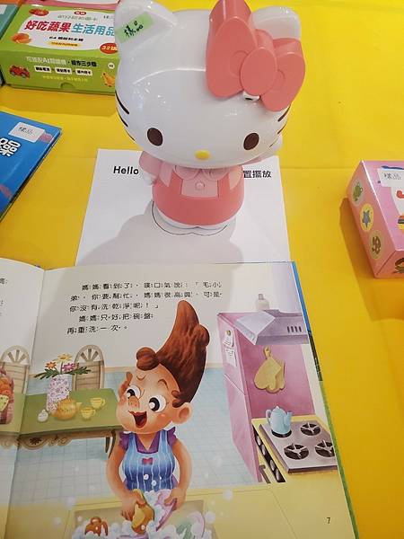 互動式語言書,HELLO KITTY造型的伴讀玩具,放在前面就會自動讀取、介紹故事~