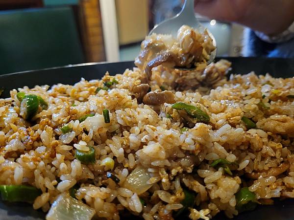 愛吃辣的人別錯過~加了胡椒、青辣椒、肉片的香噴噴炒飯,