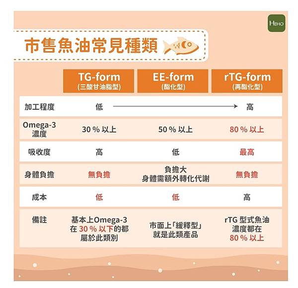 市面上一般魚油有三種 rTG 型、TG 型、EE 型,吸收度最好就是 rTG 型,