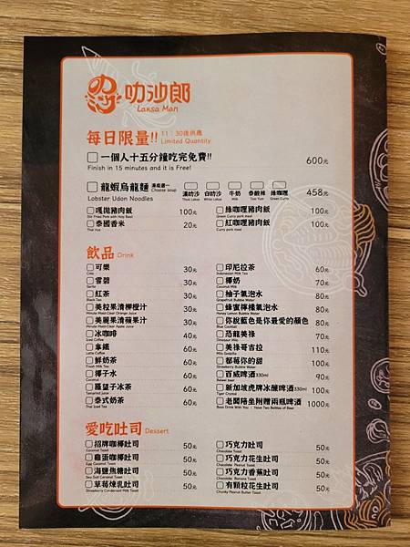 叻沙郎主餐有許多特別的選擇,推薦大家勇敢嘗試~