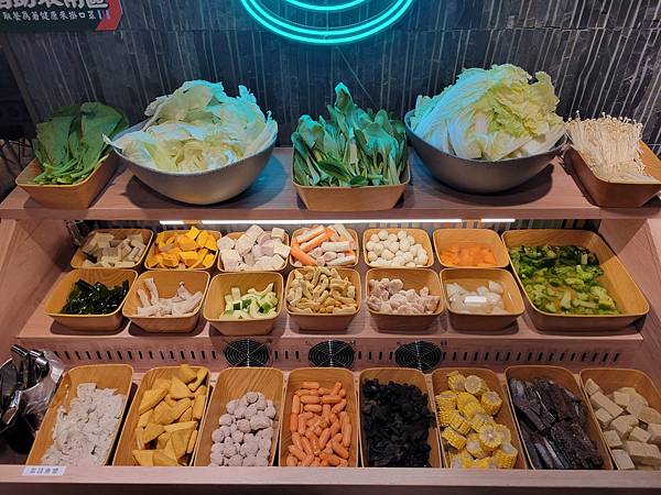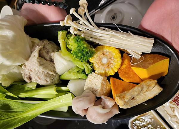 🥬蔬菜種類多、火鍋料都是經典的餃類,有少見的手工虱目魚漿!