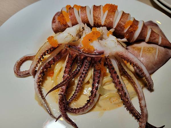 還是第一次看到整隻中卷的義大利麵!!中卷肉質Q彈不硬,越咀嚼越鮮甜!