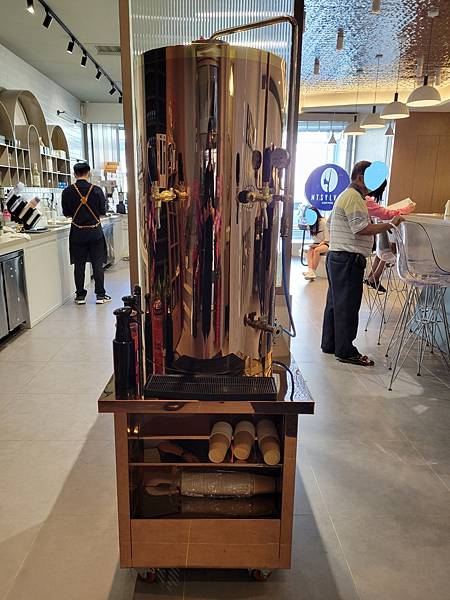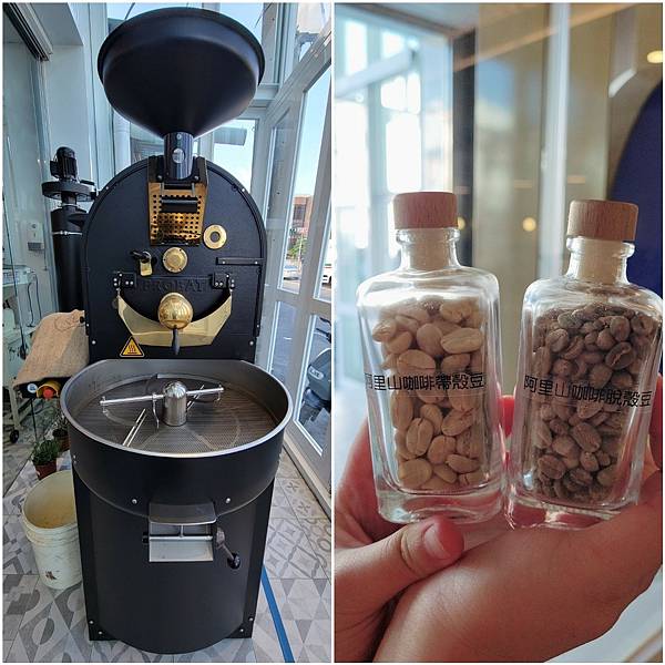 店門口右邊有超大台的烘豆機,咖啡豆從脫殼到烘焙都自己處理!