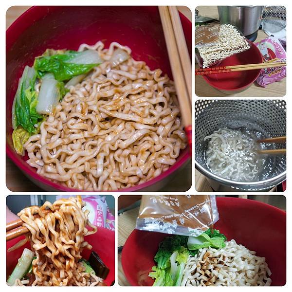 麵只要水滾開後下鍋,過個幾分鐘後起鍋再加個好吃的麻醬跟青菜還有配菜,就是營養又均衡的一餐了。