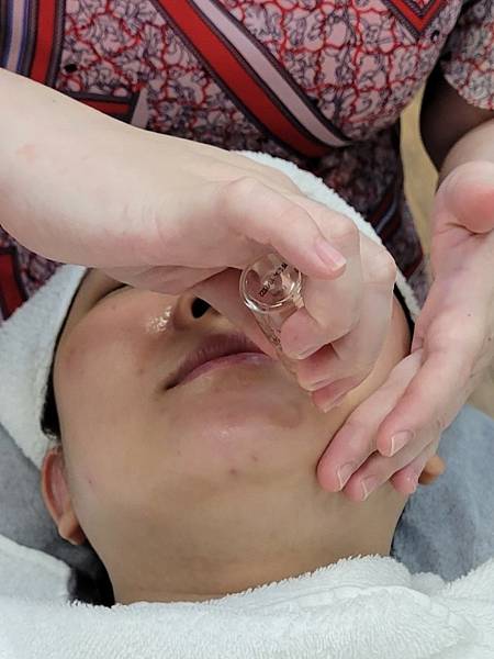 洗澡後得立即保養,護膚則是採用冷蒸,冷蒸機器噴出來水霧很細緻、水分子小,