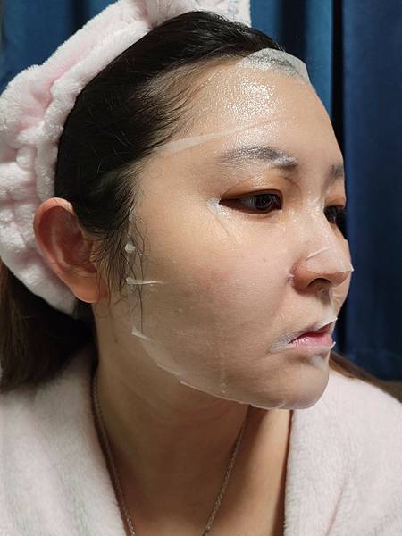 一片敷15分鐘⏱,敷上就只有薄薄一層、各個角度都很服貼~