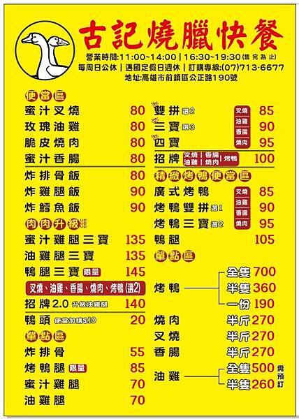 《古記燒臘》每日現做的燒臘~主打多主菜的便當!有少見的4寶飯~