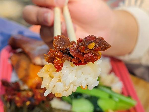 旁邊附上的🌶️辣蘿蔔是店家手工炒的~中辣的辣度加上豆鼓的香、🍚下飯絕配