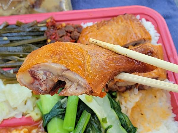🍗蜜汁雞腿皮薄~但蜜汁緊咬在皮上、不過甜很入味~