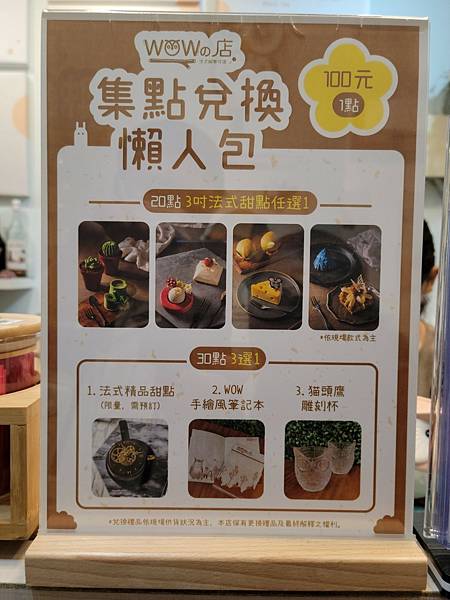 享受甜點時還能集點兌換甜品或禮物(100元1點)