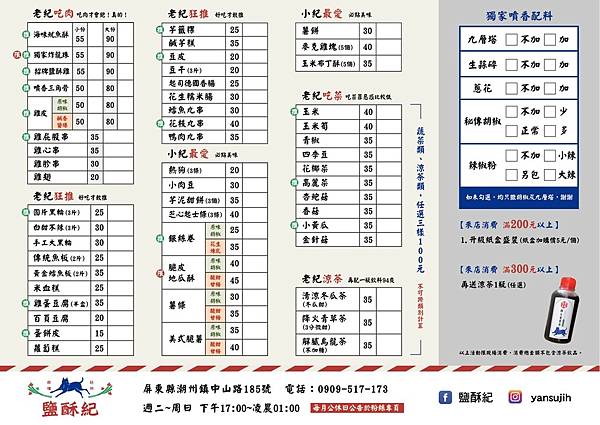 👍推薦品項: 🦑魷魚酥、🐓招牌鹹酥雞、三角骨、💦醬爆雞皮、🍠脆皮地瓜酥、香酥雞爪、🍳蛋餅皮