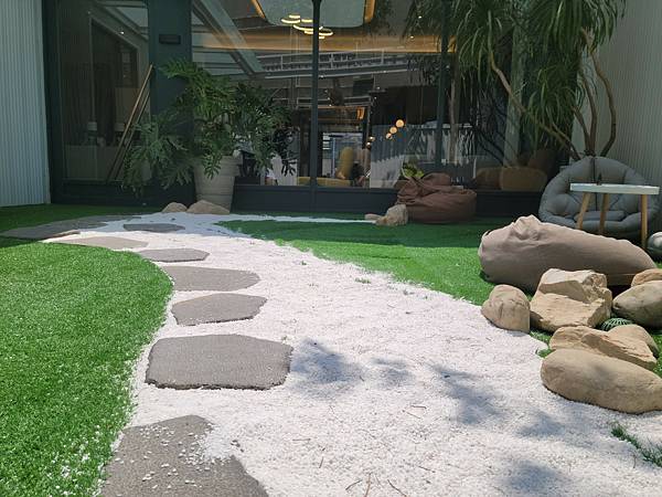 戶外白色的碎石道很有和式風格、室內是簡約英倫風