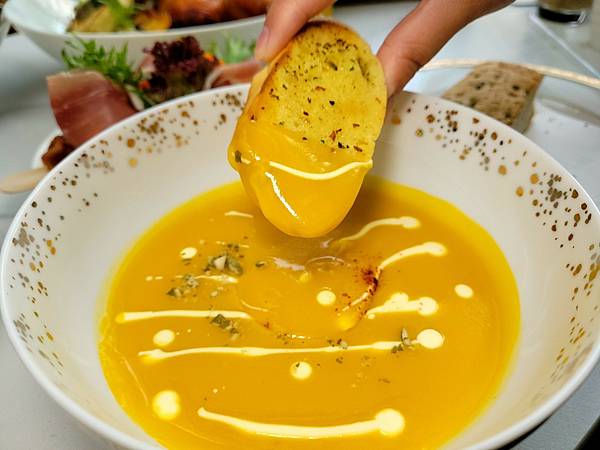濃湯南瓜味很重,湯超級ㄍㄡˊ~有南瓜天然的香甜與奶香