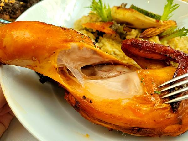 烤雞藏有滿滿的雞汁、雞油,皮薄、爆汁、肉細膩,